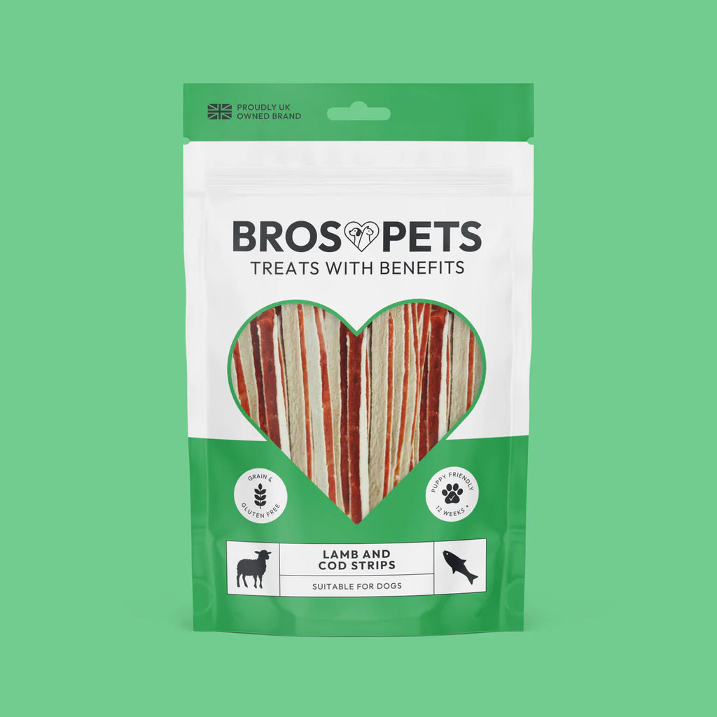 Packed with a range of health benefits, Bros Pets Lamb and Cod Strips are the perfect new addition to your pets diet. The whole range is grain and gluten free, puppy friendly (12 weeks+).