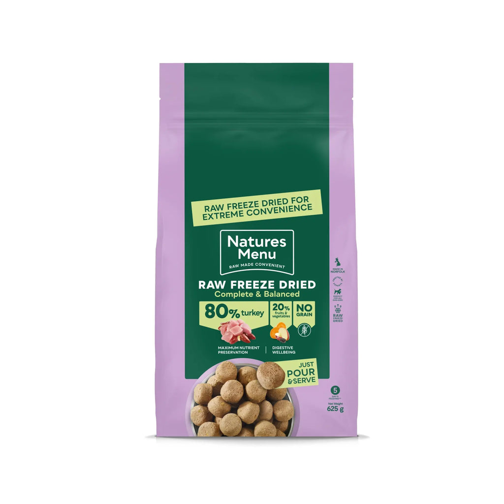 Enjoy all the benefits of a raw diet without any of the hassle! Nature's Menu Raw Freeze Dried has been carefully crafted to offer the perfect blend of convenience and nutrition in one bag! It combines the natural goodness of raw food with a freeze-drying process to produce a delicious meal your dog will thrive on. All you need to do is simply pour and serve!