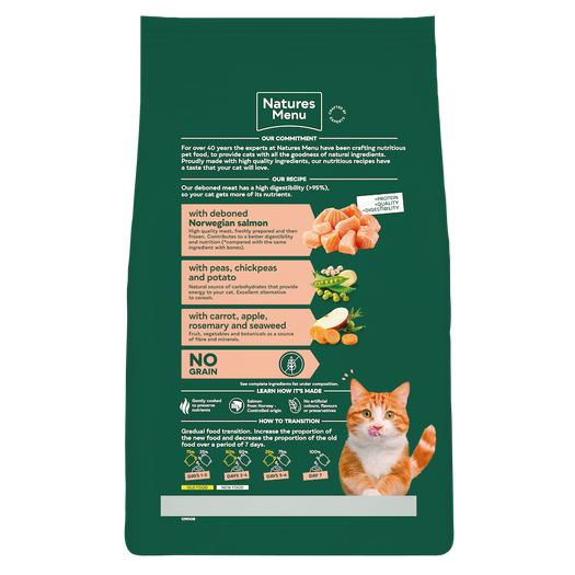 A fishy feast in every bowl! Made with quality deboned Norwegian salmon, this high-protein dry food has no artificial colours, flavours, preservatives and no grain. Just wholesome natural ingredients full of flavour.