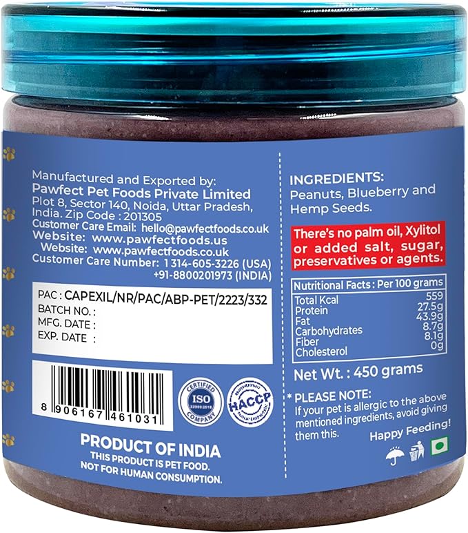 Ingredients: Peanuts, blueberries, hemp seeds