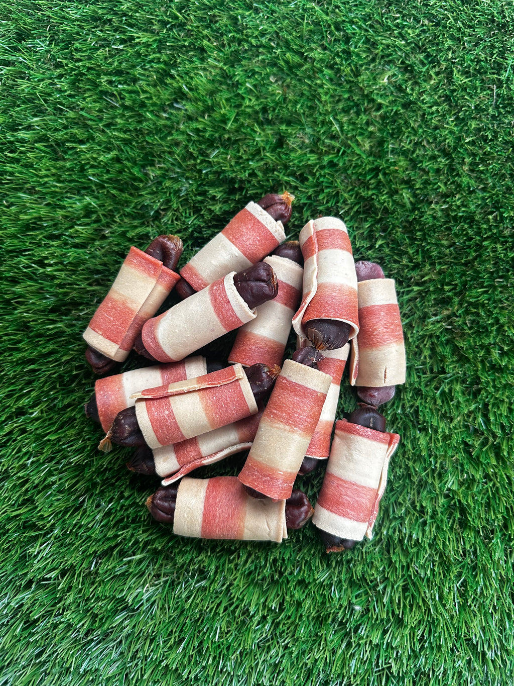 Ingredients: chicken (50%), potato starch, tapioca starch, vegetable glycerine, wheat flour, corn starch, bell pepper powder, sweet potato powder, calcium carbonate, rosemary extract.