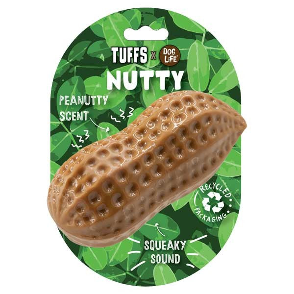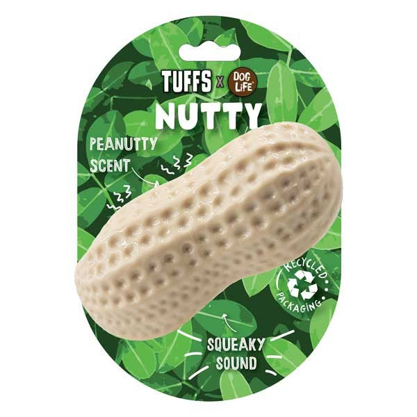 This peanut scented dog toy is one of our best sellers for a reason. It floats, squeaks, excellent for teeth and gums and has a tasty smell dogs go crazy for.